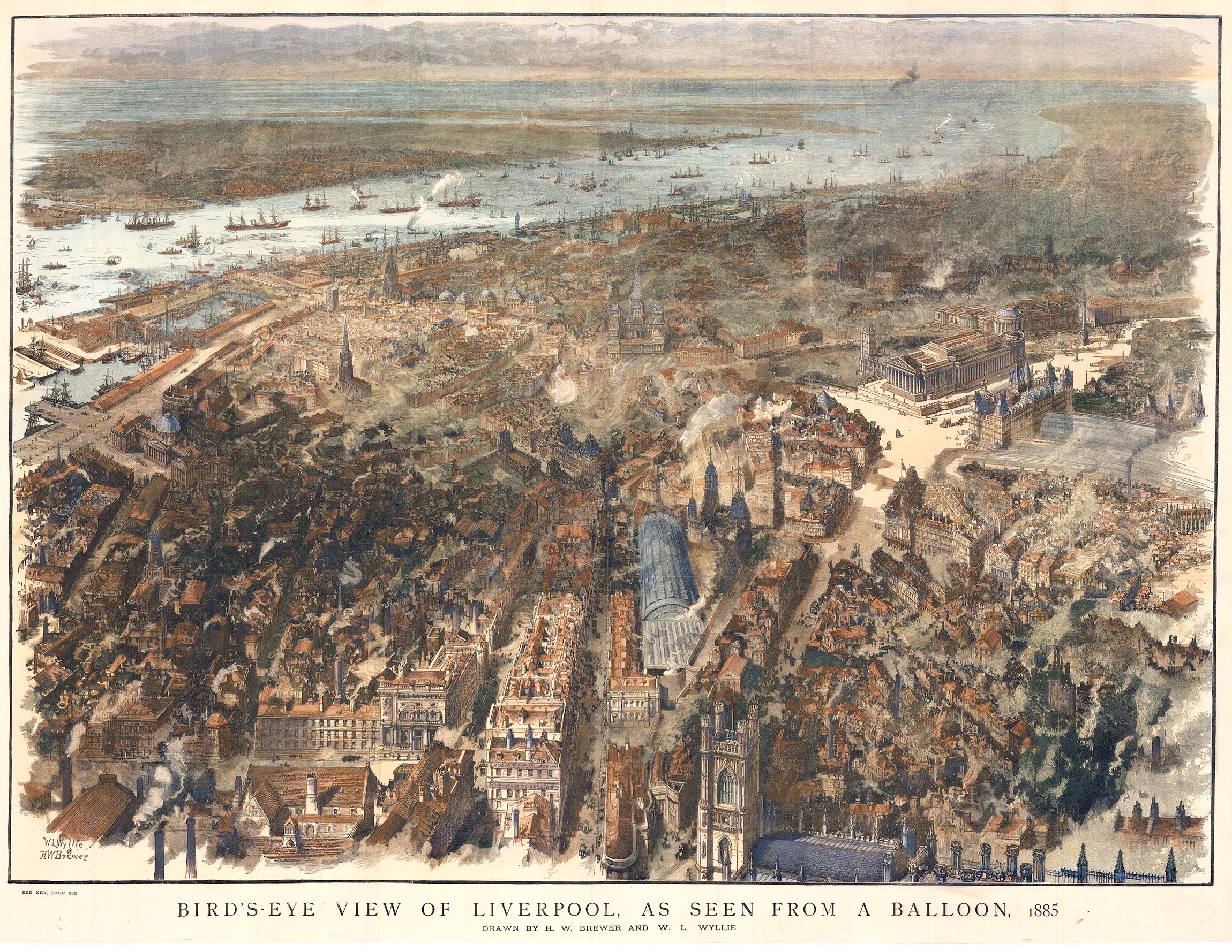 birds-eye view of Liverpool from a balloon, 1885
